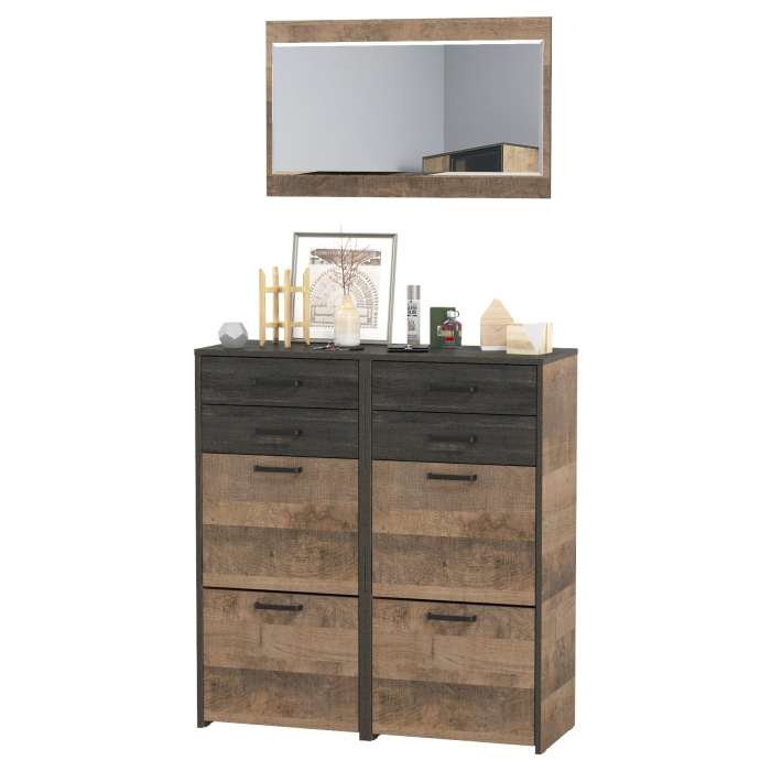 Зеркало Трувор с двумя обувницами с ящиками - современная и практичная мебель в индустриальном стиле лофт.