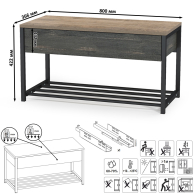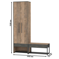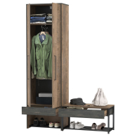 Шкаф для одежды в прихожую с тумбой для обуви с сиденьем Трувор - современная и практичная мебель в индустриальном стиле лофт.