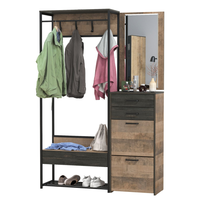 Прихожая открытая с высокой обувницей с зеркалом Трувор - современная и практичная мебель в индустриальном стиле лофт.