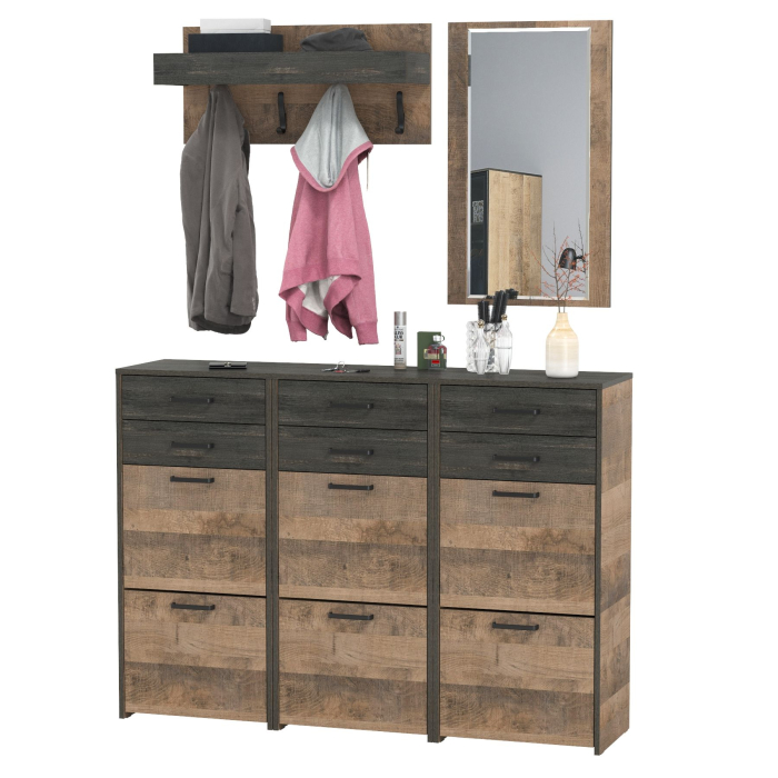 Три высоких обувницы в прихожую Трувор с зеркалом и вешалкой - современная и практичная мебель в индустриальном стиле лофт.