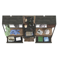 Брутальный декор и контрастная кромка, как и лицевая фурнитура придаёт мебели индустриальную эстетику. Комплектация состоит из двух прихожих Трувор 15.120, тумбы для обуви высокой Трувор 13.241.06 и зеркала навесного Трувор 15.30. В верхней части каждой прихожей Трувор 15.120 расположены четыре двухрожковых крючка. В нижней части полка которую можно использовать в качестве подставки для сумок или банкетки для переобувания. Под полкой расположен выдвижной ящик и ниша для 4 пар обуви с металлической решеткой-подставкой. Металлические стойки и решетка-подставка делают эту прихожую надёжной, аутентичной и функциональной. Высокая обувница Трувор 13.241.06 с двумя откидными дверками на 8 пар обуви и двумя выдвижными ящиками для хранения различных принадлежностей и мелких предметов. Направляющие выдвижных ящиков скрытого монтажа оснащены доводчиками, что обеспечивает повышенный комфорт и надёжность. На нижних кромках опор предусмотрены пластиковые подпятники для защиты поверхности пола от механических повреждений. Классическое прямоугольное навесное зеркало Трувор 15.30 на панели из ЛДСП. Согласно Ваших запросов при установке зеркало возможно повесить как горизонтально, так и вертикально. Размер зеркала позволяет ему стать частью множества композиций. Зеркало 15.30 имеет декоративный скос фаски под углом по всему периметру полотна. Скрытые крепежи на задней поверхности и предусматривают выбор расположения зеркала.