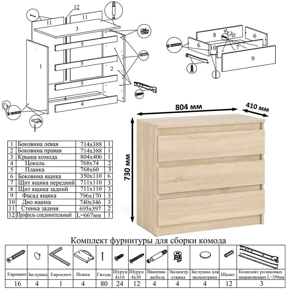 Гарантия: обмен неисправных частей комода три ящика Мори МК800.1 в течении двух недель с момента приобретения.