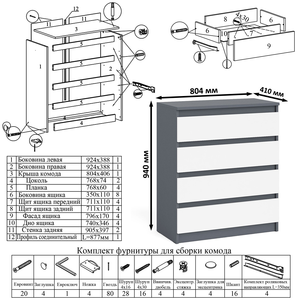 Отзывы о Столплит Комод четыре ящика Мори МК800.4 Графит/Белый