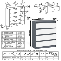 Гарантия: обмен неисправных частей комода четыре ящика Мори МК800.4 в течении двух недель с момента приобретения.