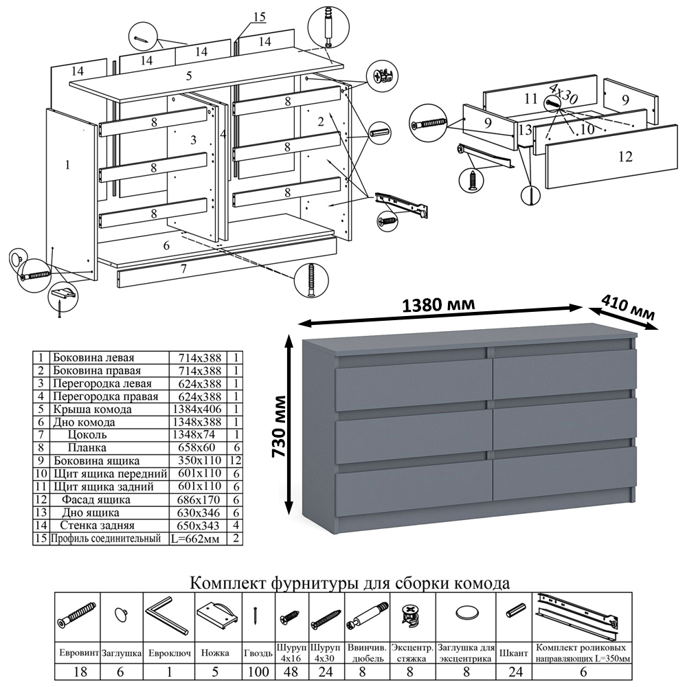 Отзывы о Столплит Комод на шесть ящиков Мори МК1380.6 Графит