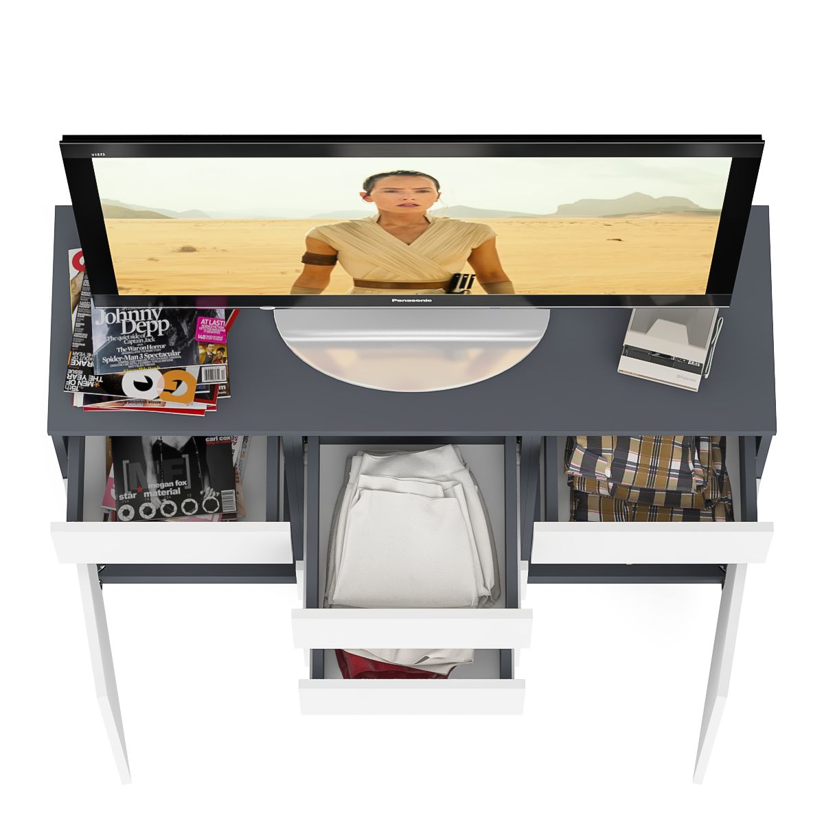 Выполнен в 5-ти цветах: белый, дуб сонома, графит, дуб сонома/белый и графит/белый.