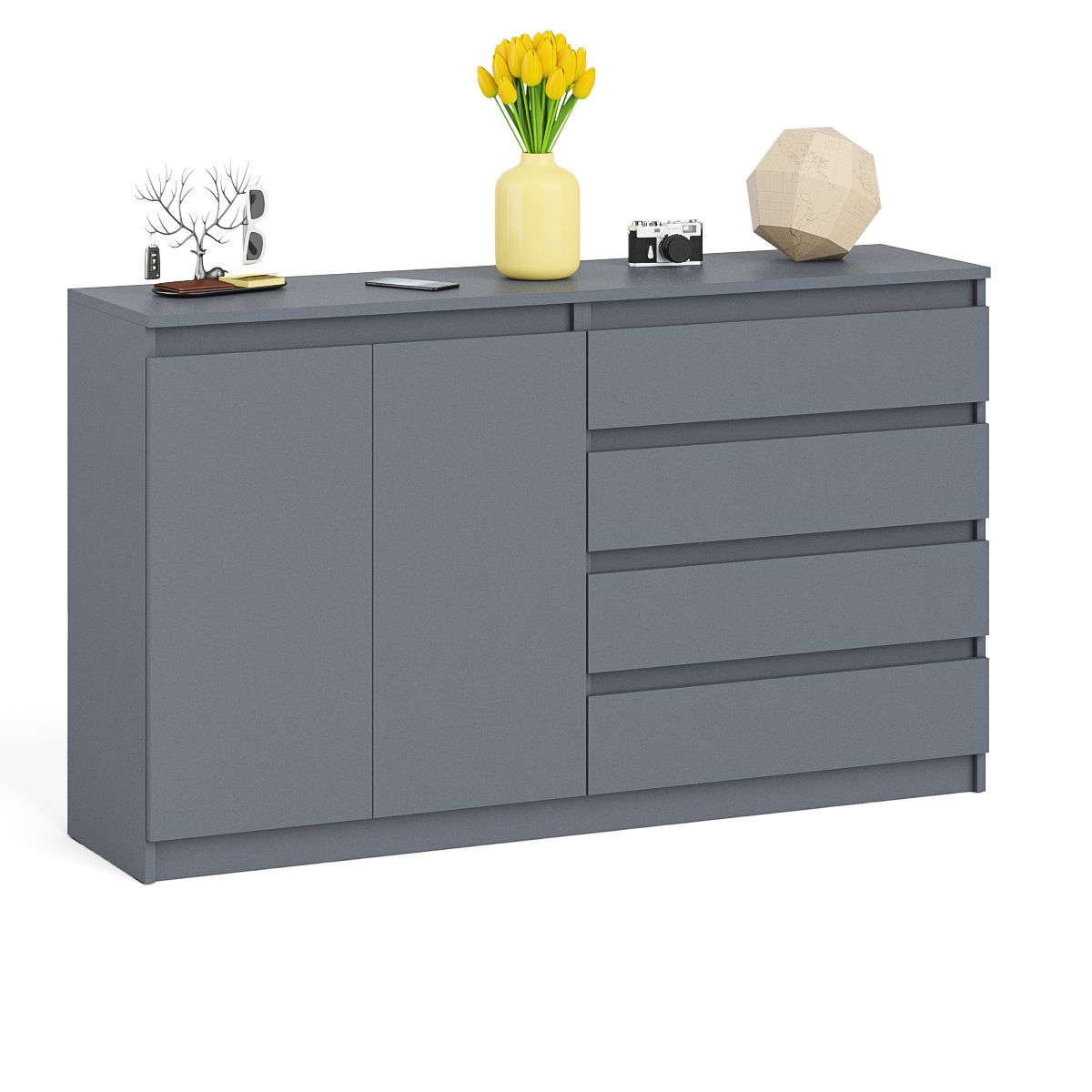 Комод широкий на четыре ящика и две дверки Мори МК1600.1 - минималистичный дизайн и доступная цена позволяет наслаждаться качественной и современной мебелью без значительных финансовых затрат!