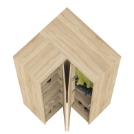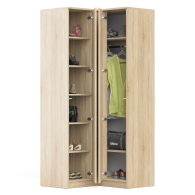 На нижних кромках опор предусмотрены пластиковые подпятники для защиты поверхности пола от механических повреждений. Корпус и фасады изготовлены из экологически чистой ламинированной ДСП 16 мм, торцы окромлены ПХВ плёнкой 0,4 мм. Поставляется угловой шкаф Мори МШУ960.1 в разобранном виде в надёжной упаковке, с комплектом сборочной фурнитуры и инструкцией по сборке.