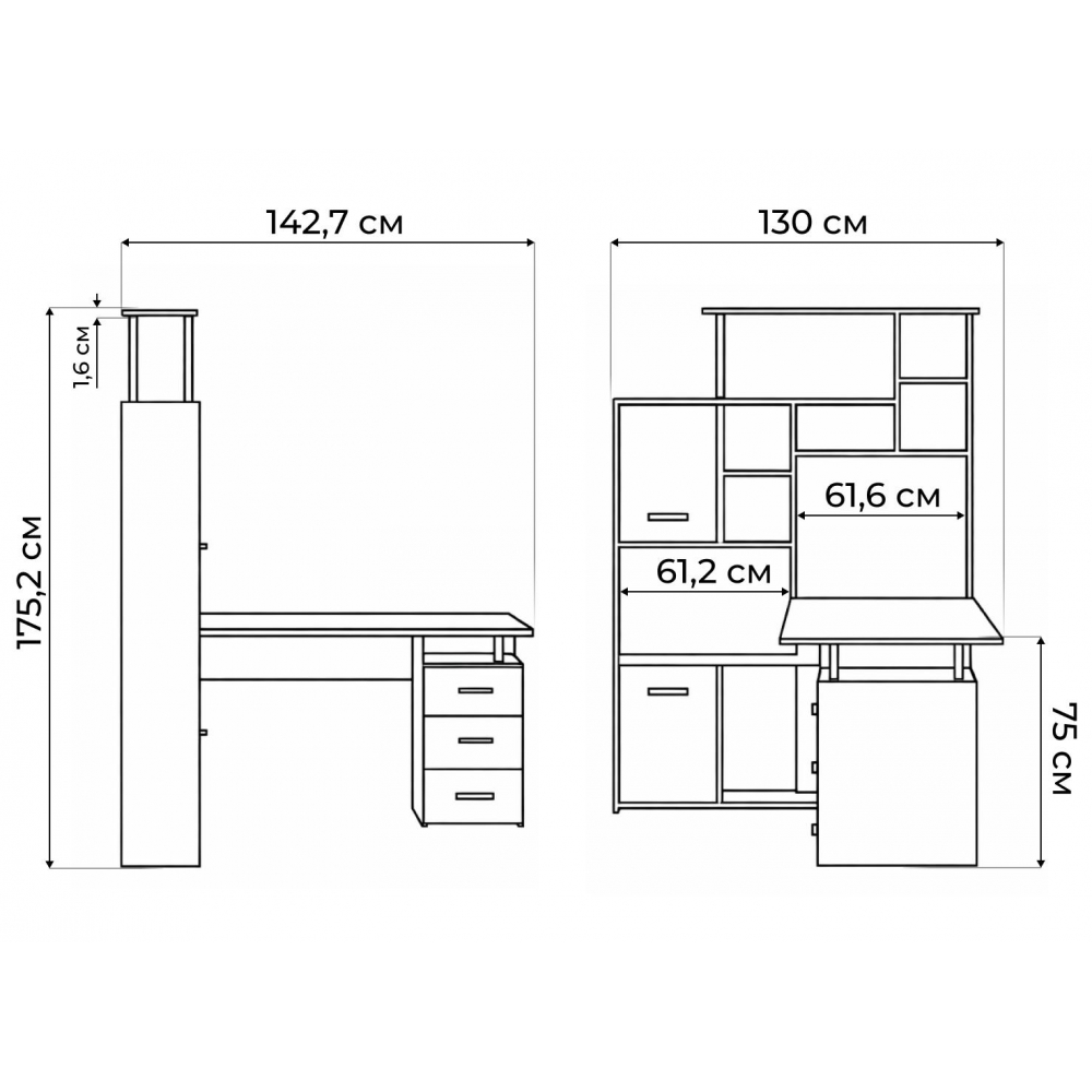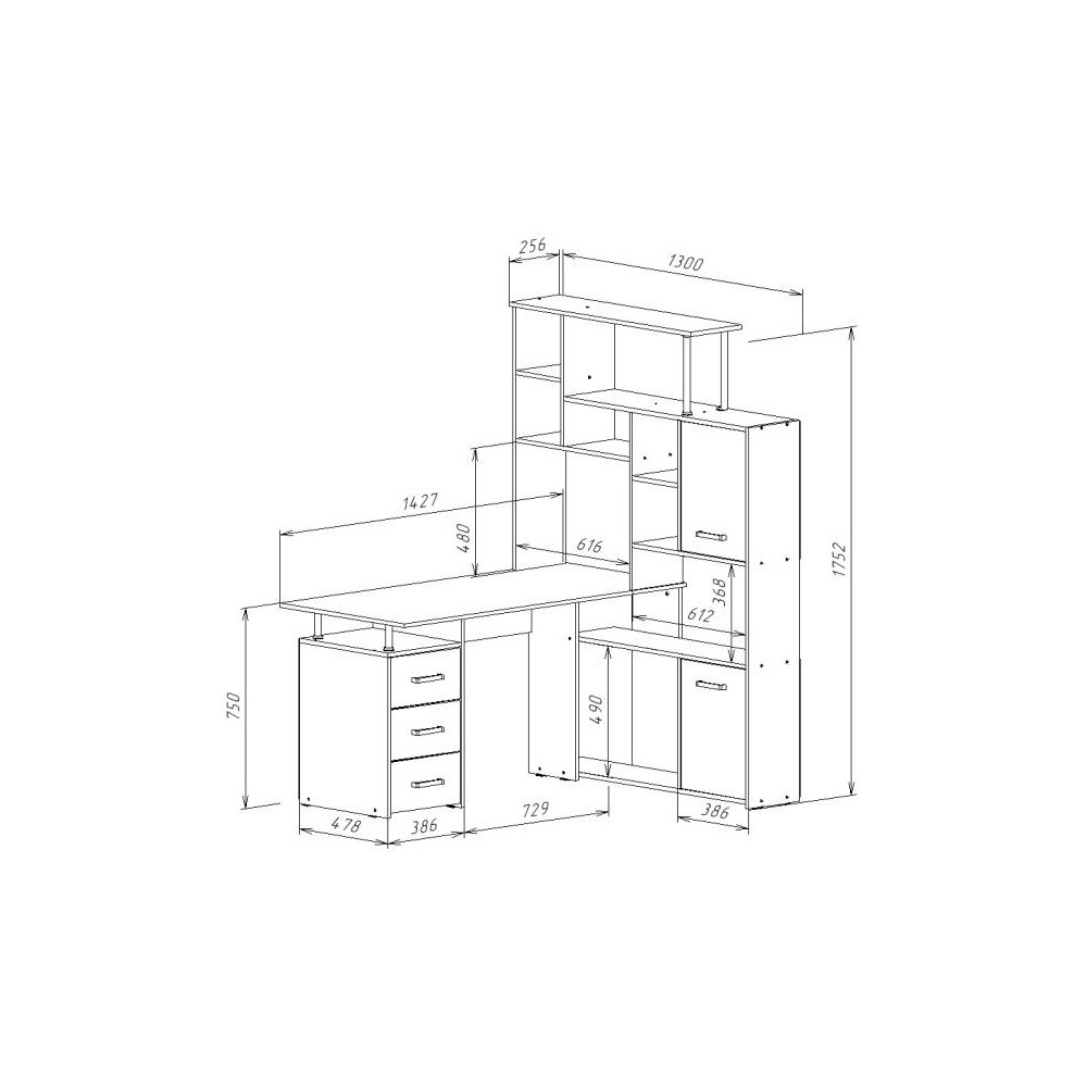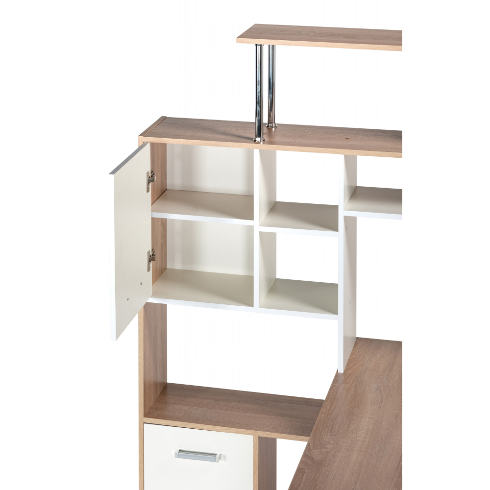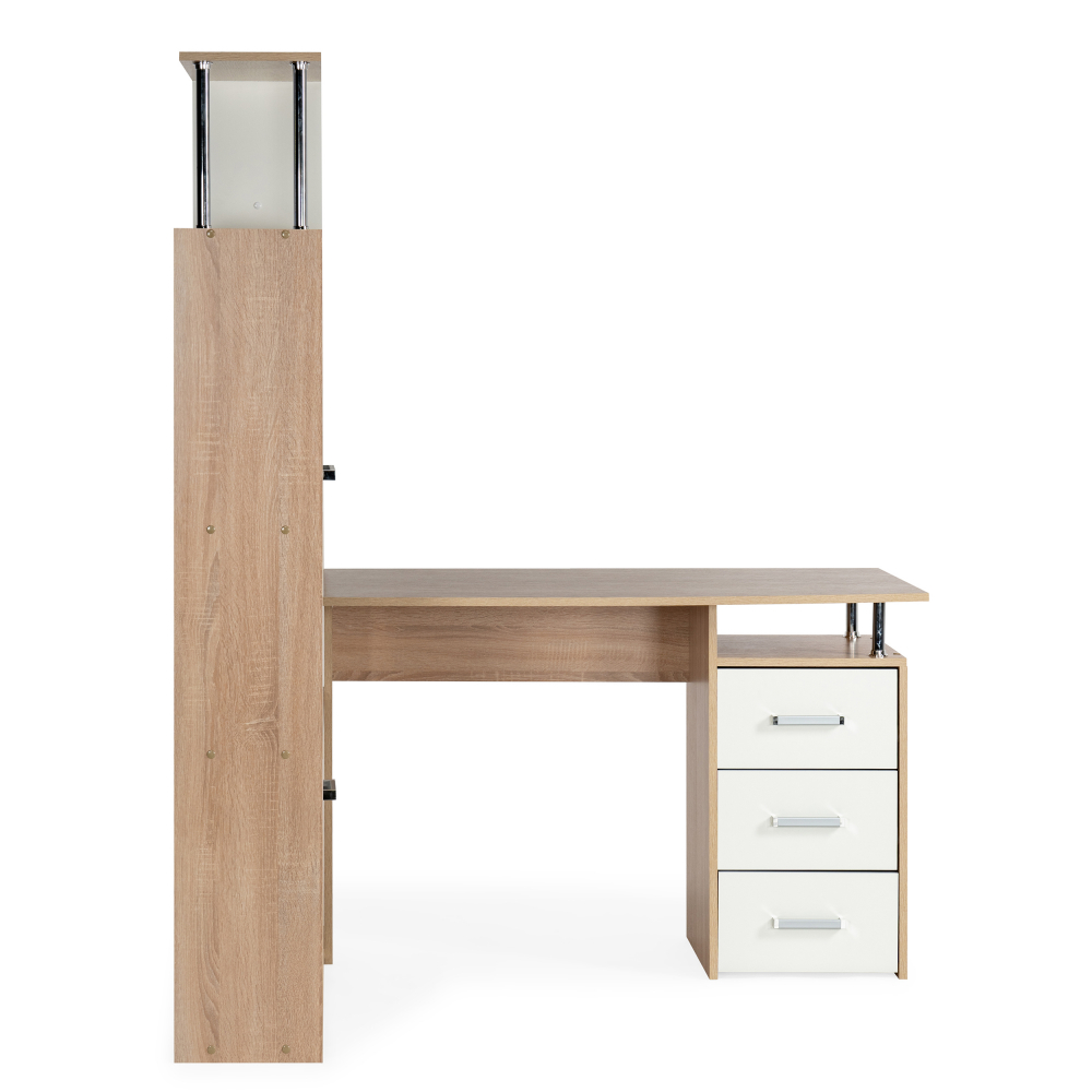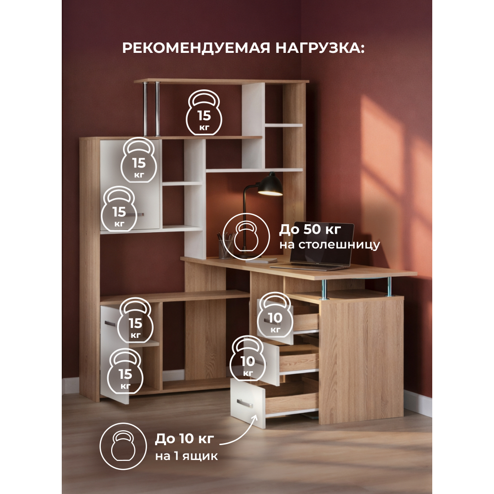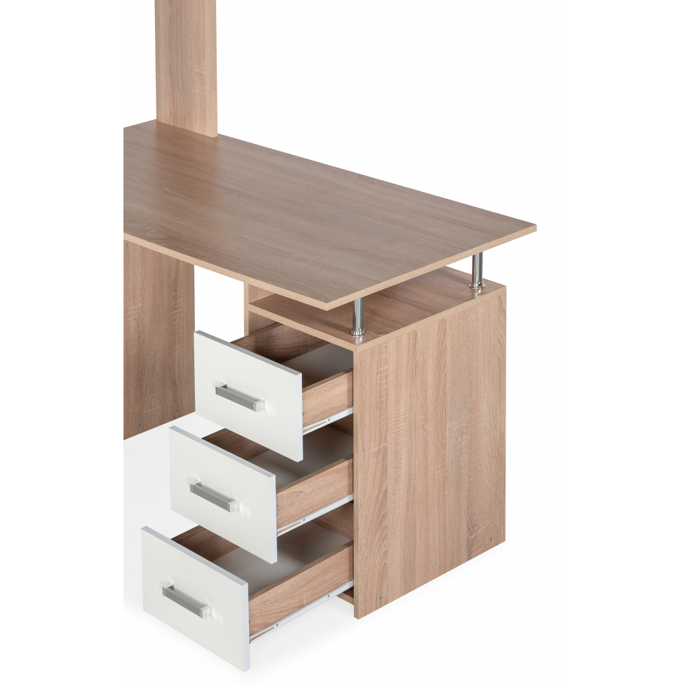 Стол КС15 левый дуб сонома; ЛДСП. Толщина ЛДСП - 16мм. Ящики полного выдвижения на роликовых направляющих. Вместительная конструкция для большого количества вещей. Большая рабочая поверхность