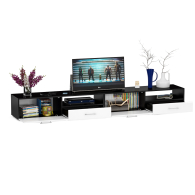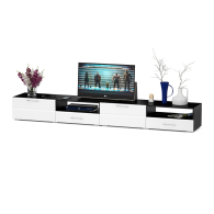 Особый акцент данной модели - глянцевое покрытие фасадов, выполненных из МДФ 16 мм. с торцевой фрезеровкой в виде фацета и геометрической фрезеровкой откидных дверок. Линейный декор тумбы подчёркнут ручками-рейлингами, имеющих сочетанное хромированно-матовое покрытие. Конструктивно тумба состоит из двух одинаковых тумб Ларго 1,4. Каждая из тумб имеет два одинаковой ширины отделения. Слева расположена закрытая откидной дверкой ниша, справа - открытая ниша и выдвижной ящик. На верхнем двойном горизонте тумбы шириной 280 см. достаточно места для современного телевизора любой диагонали, предметов декора, а в нишах и ящике тумбы - для аппаратуры. Установлена тумба на плоские, прочные и надёжные прямоугольные ножки. Пластиковые накладки на ножках защитят Ваше напольное покрытие от механических повреждений. Корпус тумбы изготовлен из ламинированной ДСП 16 мм., фасады - МДФ 16 мм. с глянцевым покрытием, задняя стенка и дно ящиков - ЛДВП, торцы деталей закромлены плёнкой ПВХ. Ящики закреплены на роликовых направляющих, откидные дверки - на накладных петлях и имеют магнитные держатели. Поставляется тумба в разобранном виде, надёжно упакованной, с приложенной подробной инструкцией по сборке и комплектом необходимой фурнитуры.