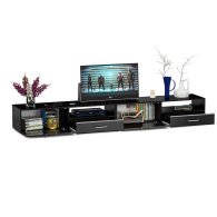 Особый акцент данной модели - глянцевое покрытие фасадов, выполненных из МДФ 16 мм. с торцевой фрезеровкой в виде фацета и геометрической фрезеровкой откидных дверок. Линейный декор тумбы подчёркнут ручками-рейлингами, имеющих сочетанное хромированно-матовое покрытие. Конструктивно тумба состоит из двух одинаковых тумб Ларго 1,4. Каждая из тумб имеет два одинаковой ширины отделения. Слева расположена закрытая откидной дверкой ниша, справа - открытая ниша и выдвижной ящик. На верхнем двойном горизонте тумбы шириной 280 см. достаточно места для современного телевизора любой диагонали, предметов декора, а в нишах и ящике тумбы - для аппаратуры. Установлена тумба на плоские, прочные и надёжные прямоугольные ножки. Пластиковые накладки на ножках защитят Ваше напольное покрытие от механических повреждений. Корпус тумбы изготовлен из ламинированной ДСП 16 мм., фасады - МДФ 16 мм. с глянцевым покрытием, задняя стенка и дно ящиков - ЛДВП, торцы деталей закромлены плёнкой ПВХ. Ящики закреплены на роликовых направляющих, откидные дверки - на накладных петлях и имеют магнитные держатели. Поставляется тумба в разобранном виде, надёжно упакованной, с приложенной подробной инструкцией по сборке и комплектом необходимой фурнитуры.