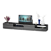 Особый акцент данной модели - глянцевое покрытие фасадов, выполненных из МДФ 16 мм. с торцевой фрезеровкой в виде фацета и геометрической фрезеровкой откидных дверок. Линейный декор тумбы подчёркнут ручками-рейлингами, имеющих сочетанное хромированно-матовое покрытие. Конструктивно тумба состоит из двух одинаковых тумб Ларго 1,4. Каждая из тумб имеет два одинаковой ширины отделения. Слева расположена закрытая откидной дверкой ниша, справа - открытая ниша и выдвижной ящик. На верхнем двойном горизонте тумбы шириной 280 см. достаточно места для современного телевизора любой диагонали, предметов декора, а в нишах и ящике тумбы - для аппаратуры. Установлена тумба на плоские, прочные и надёжные прямоугольные ножки. Пластиковые накладки на ножках защитят Ваше напольное покрытие от механических повреждений. Корпус тумбы изготовлен из ламинированной ДСП 16 мм., фасады - МДФ 16 мм. с глянцевым покрытием, задняя стенка и дно ящиков - ЛДВП, торцы деталей закромлены плёнкой ПВХ. Ящики закреплены на роликовых направляющих, откидные дверки - на накладных петлях и имеют магнитные держатели. Поставляется тумба в разобранном виде, надёжно упакованной, с приложенной подробной инструкцией по сборке и комплектом необходимой фурнитуры.