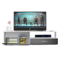 Особый акцент данной модели - глянцевое покрытие фасадов, выполненных из МДФ 16 мм. с торцевой фрезеровкой в виде фацета и геометрической фрезеровкой откидной дверки. Линейный декор тумбы подчёркнут ручками-рейлингами, имеющих сочетанное хромированно-матовое покрытие. Конструктивно тумба разделена на два одинаковой ширины отделения. Слева расположена закрытая откидной дверкой ниша, справа - открытая ниша и выдвижной ящик. На верхнем горизонте тумбы шириной 140 см. достаточно места для современного телевизора любой диагонали, а в нишах и ящике тумбы - для аппаратуры. Установлена тумба на плоские, прочные и надёжные прямоугольные ножки. Пластиковые накладки на ножках защитят Ваше напольное покрытие от механических повреждений. Корпус тумбы изготовлен из ламинированной ДСП 16 мм., фасады - МДФ 16 мм. с глянцевым покрытием, задняя стенка и дно ящика - ЛДВП, торцы деталей закромлены плёнкой ПВХ. Ящик закреплен на роликовых направляющих, откидная дверка - на накладных петлях и имеет магнитные держатели. Поставляется тумба в разобранном виде, надёжно упакованной, с приложенной подробной инструкцией по сборке и комплектом необходимой фурнитуры.