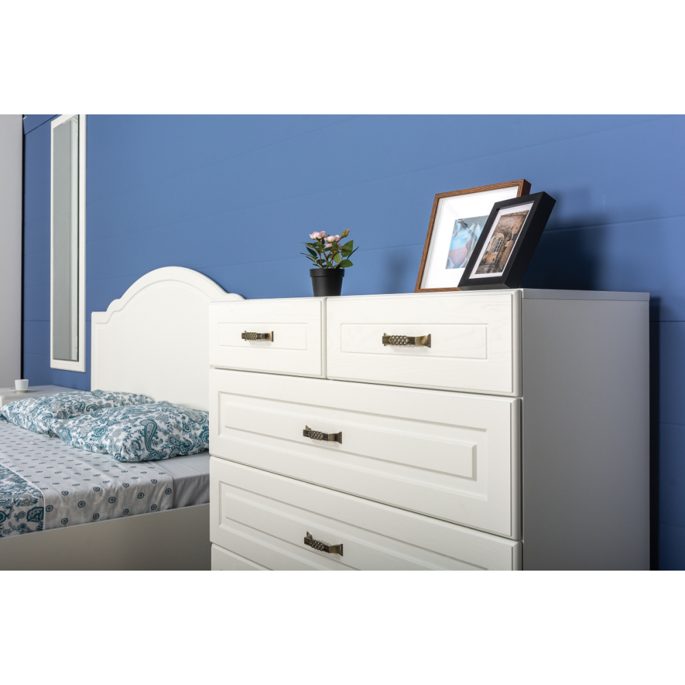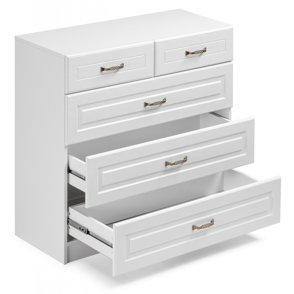 Комод Ливерпуль 10.103.01 белый / ясень ваниль; МДФ, ЛДСП. Имеется 5 вместительных ящиков. Красивый и практичный вариант. Комод подойдёт также и под телевизор. Ручки металлические