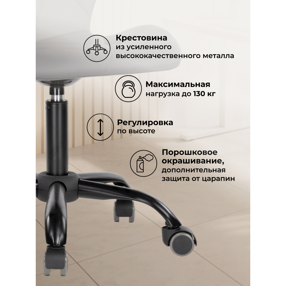 Стул Вальд экокожа; Металл. Крестовина из усиленного металла. Максимальная нагрузка до 130кг. Порошковое окрашивание. Прорезиненные колеса для защиты напольного покрытия