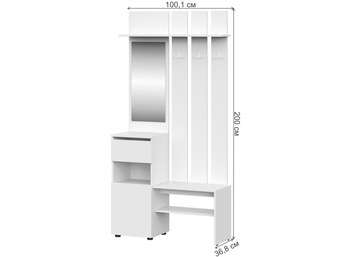 В прихожей также имеется небольшая скамья для обувания, под которой расположена полка для обуви и несколько крючков для верхней одежды. Это делает прихожую Валенсия удобной и практичной для хранения верхней одежды и обуви.