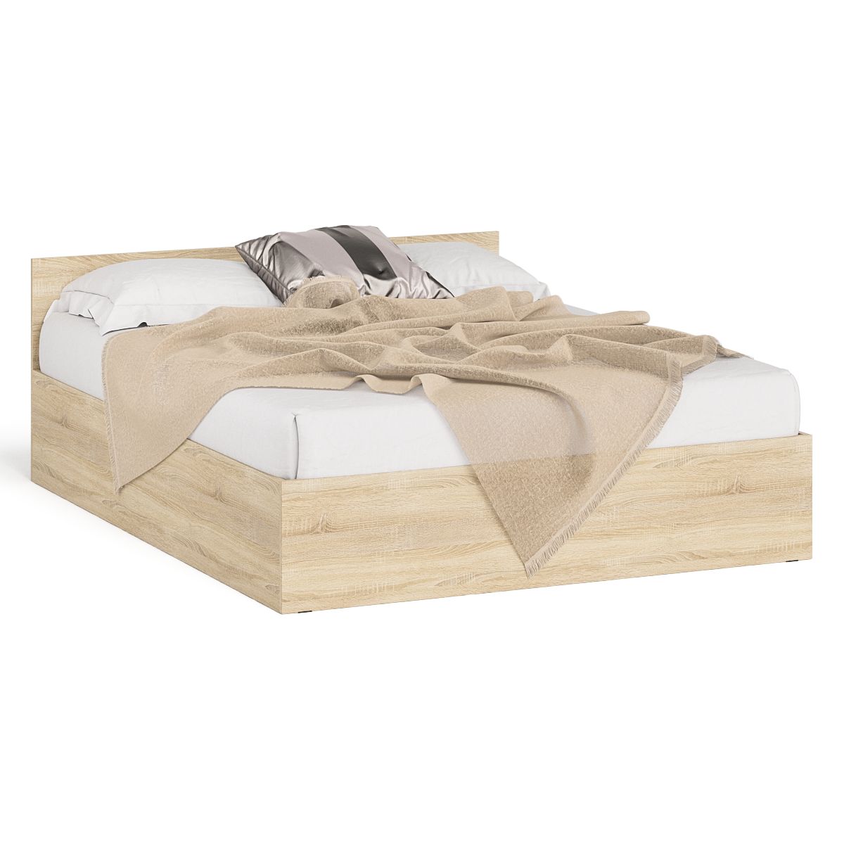 Удобная двуспальная кровать с трёхсторонним доступом к спальному месту размером 1600х2000 мм. - отличный вариант для семейной спальни. Кровать оборудована надёжным основанием под матрас из настила из ДСП. Матрас приобретается отдельно.