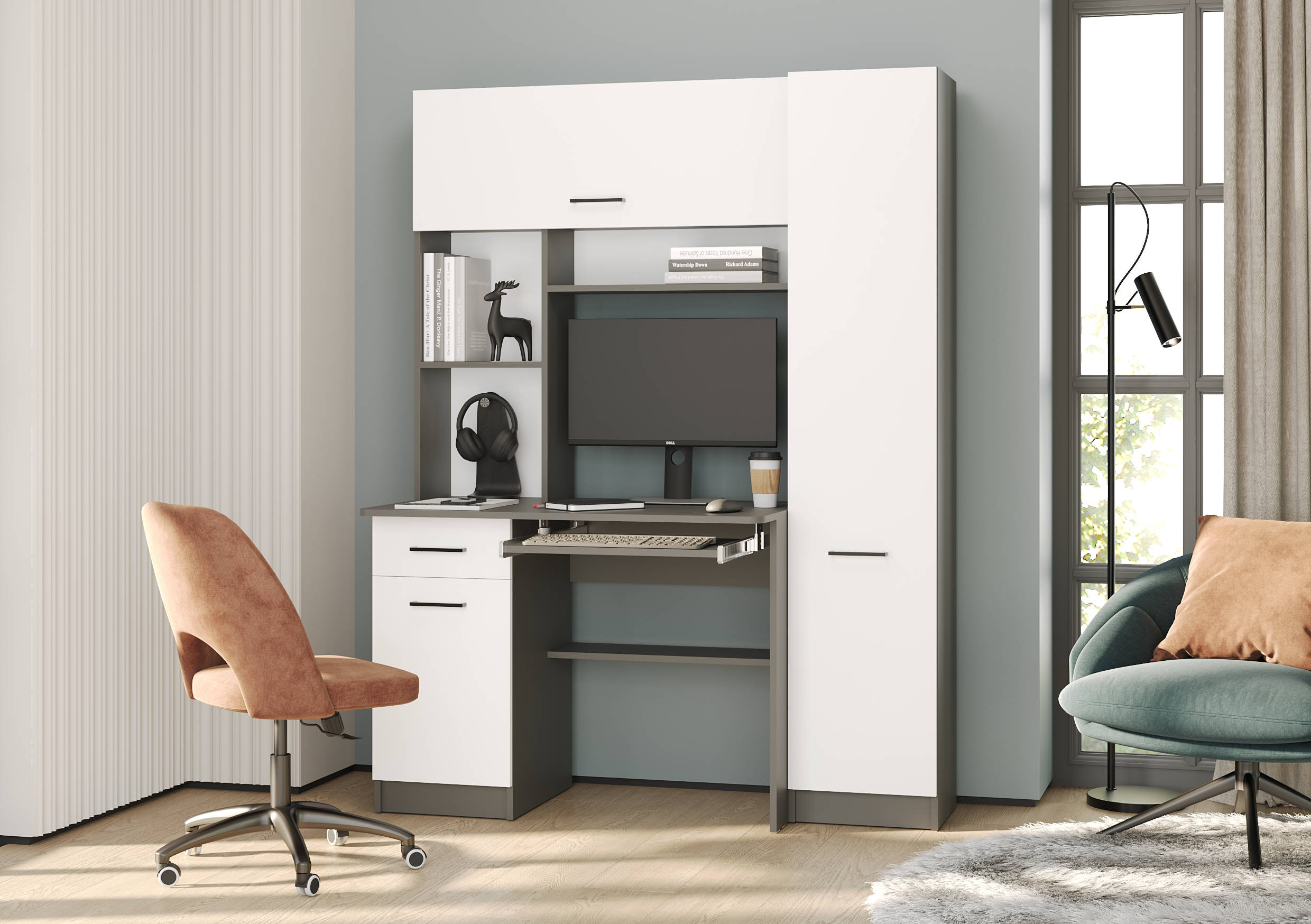 Выполнено в 2-х цветах: графит/белый и ясень шимо светлый.