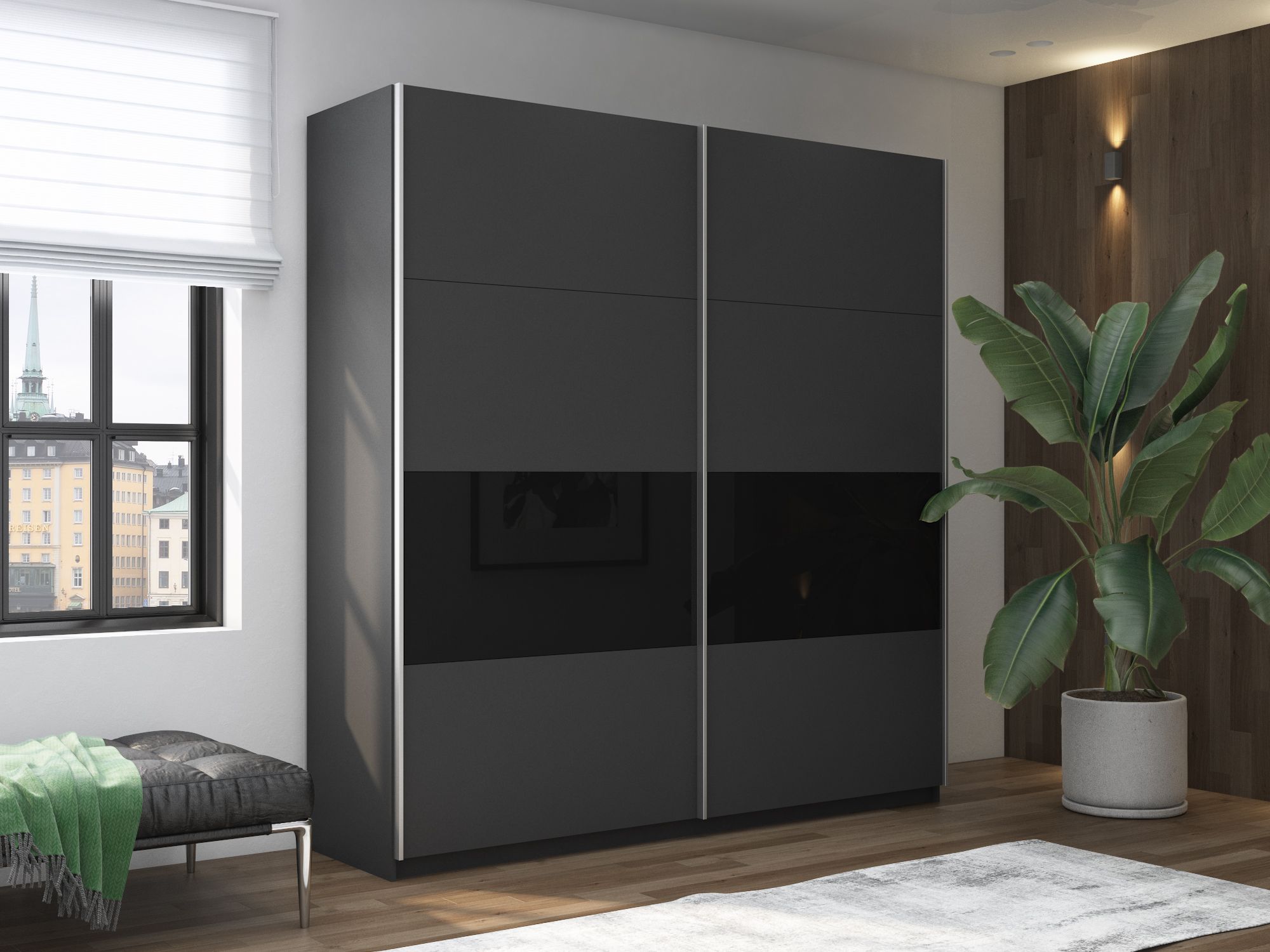 Отзывы о Столплит Шкаф-купе Прайм 2х дверный ДСП/Стекло черное 160х57х230 Темно-серый