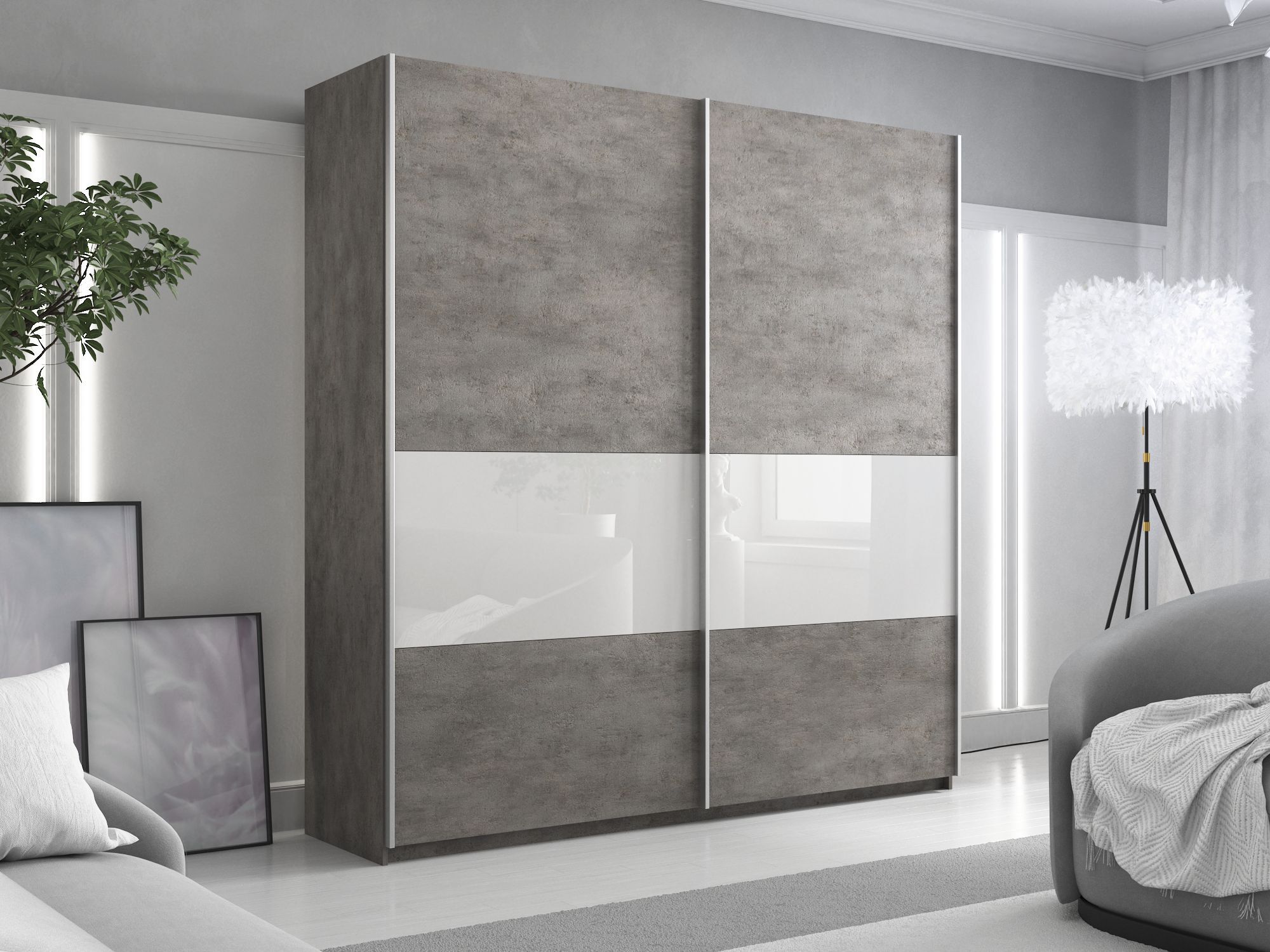 Отзывы о Столплит Шкаф-купе Прайм 2х дверный ДСП/Белый Глянец 160х57х230 Бетон