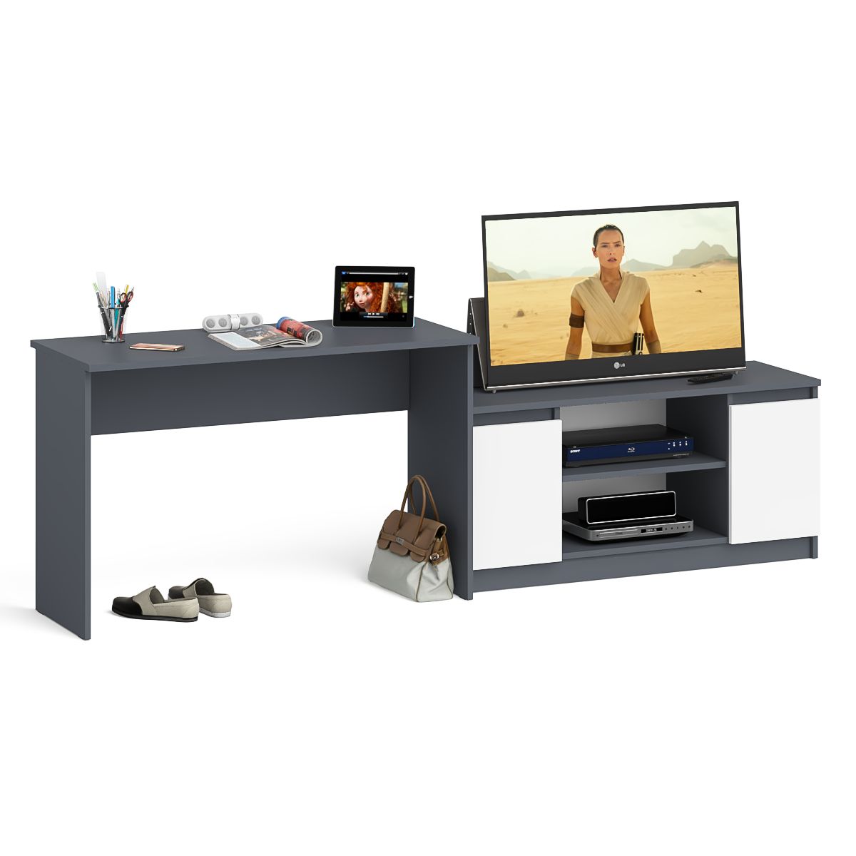 Комплектация включает стол письменный Мори МСП1200.1 и тумбу ТВ Мори МТВ1200.1. Продуманная конструкция позволяет убрать лишние предметы, тем самым сохраняя единый стиль оформления помещения. Отсутствие ручек главное преимущество данной модели. Роль ручек выполняют сами фасады. Стол письменный Мори МСП1200.1 - простой аккуратный стол без тумб и ящиков - минималистичный дизайн и доступная цена. Столещница размером 120х50 см. вместит все необходимые принадлежности для работы. По бокам располагаются две опоры из ЛДСП выполняющие роль ножек. С задней стороны стола имеется царга - верхняя соединительная планка между ножками. Тумба ТВ Мори МТВ1200.1 состоит из открытой ниши по центру и двумя закрытыми распашными дверками по краям. Все ниши имеет полочку по середине. На тумбе достаточно места для размещения телевизора дигональю 47 дюймов. Можно использовать как ТВ тумбу, так и обычную для хранения и размещения Ваших вещей.