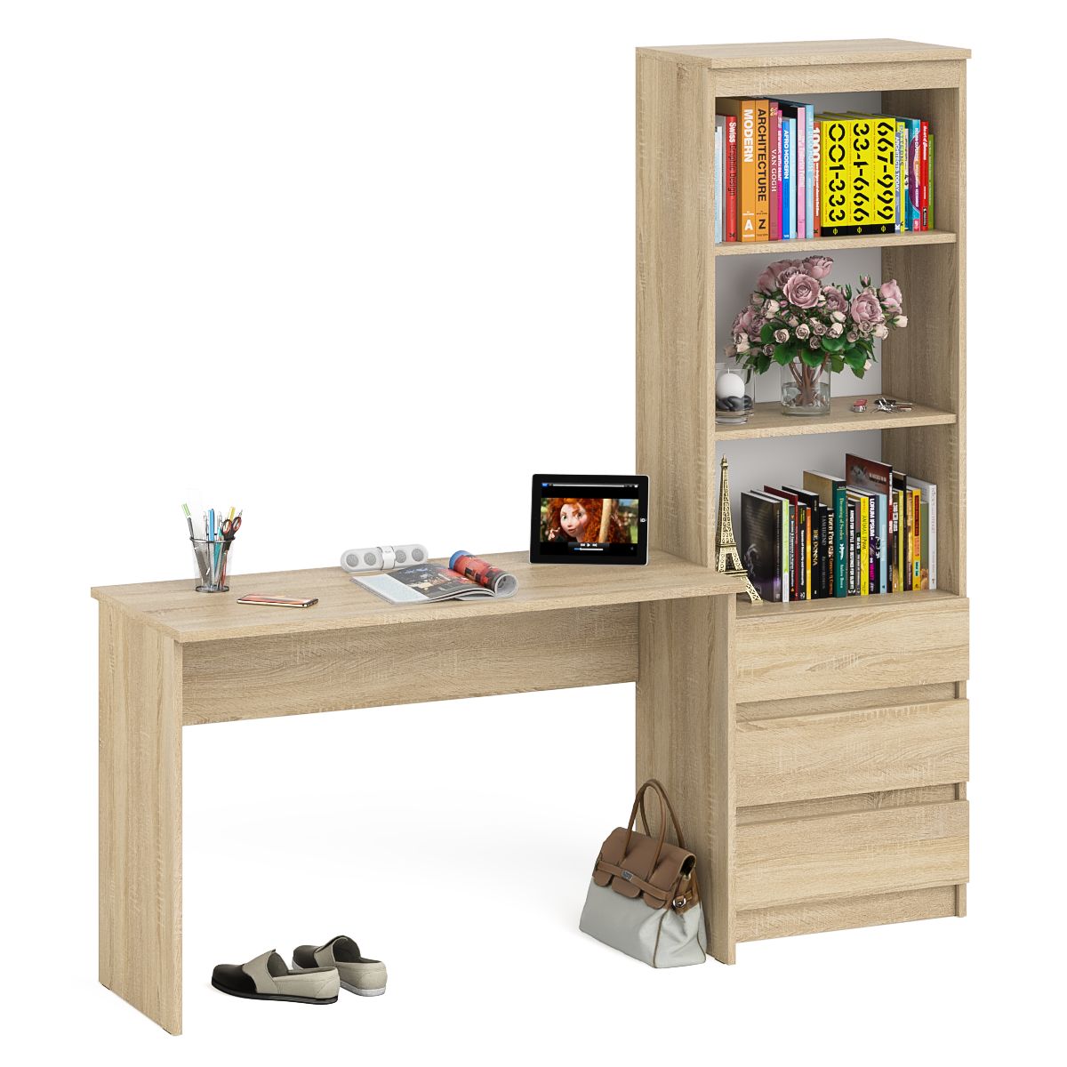 Письменный стол 1200 со стеллажом с ящиками МСТ600 Мори - минималистичный дизайн и доступная цена позволяет наслаждаться качественной и современной мебелью без значительных финансовых затрат!