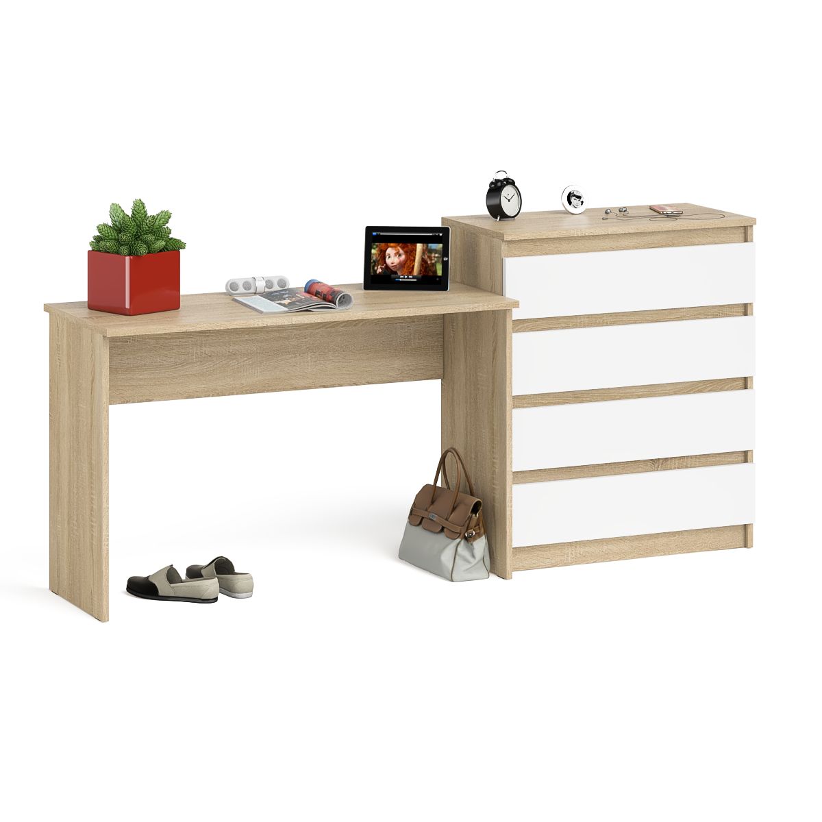 Отзывы о Столплит Стол письменный 1200 с комодом МК800 4 ящика Мори Дуб Сонома, Белый