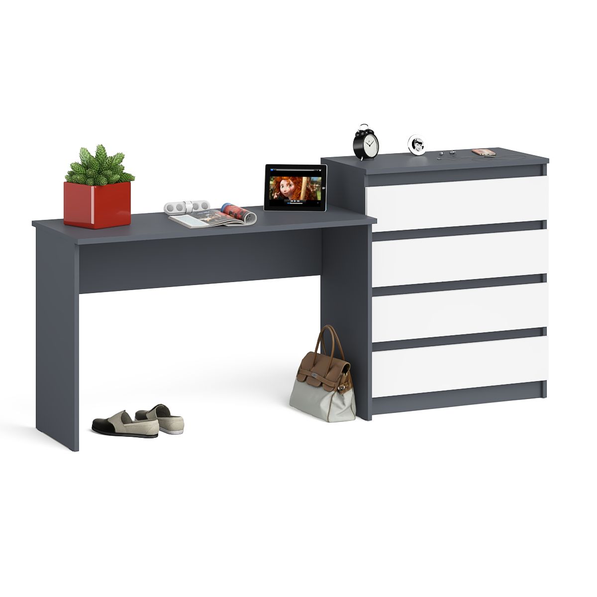 Отзывы о Столплит Стол письменный 1200 с комодом МК800 4 ящика Мори Графит/Белый