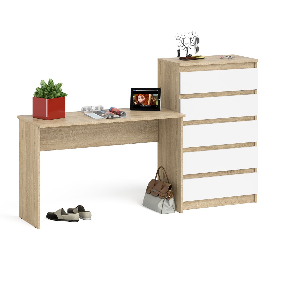 Отзывы о Столплит Стол письменный 1200 с комодом 700 5 ящиков Мори Дуб Сонома, Белый