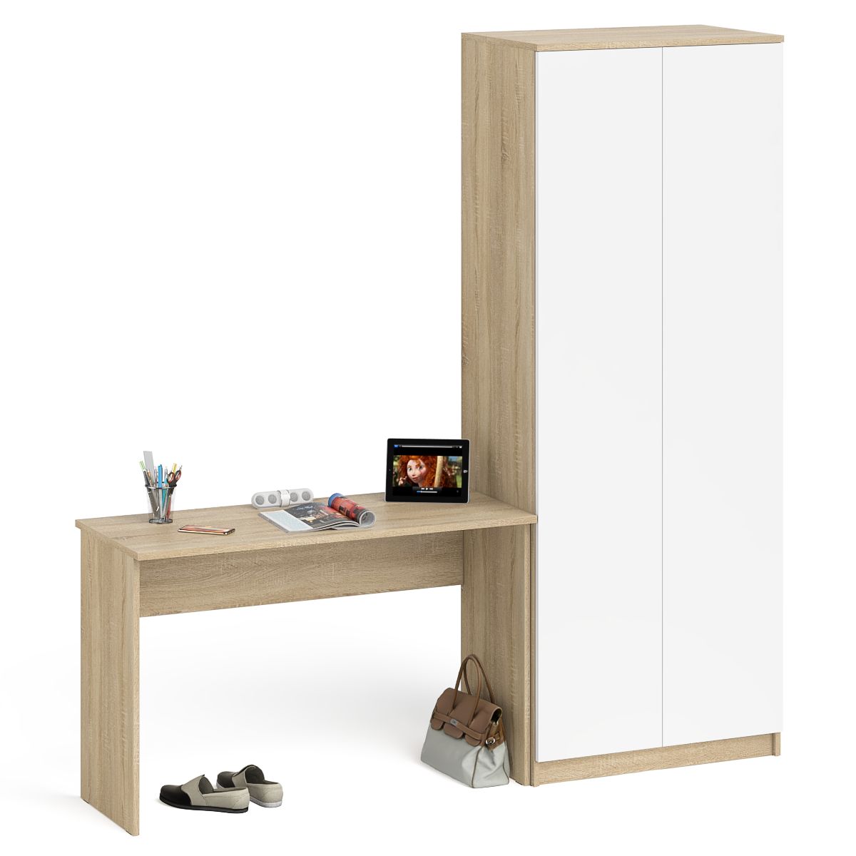 Отзывы о Столплит Письменный стол на 1200 и двудверный шкаф на 800 Мори Дуб Сонома, Белый