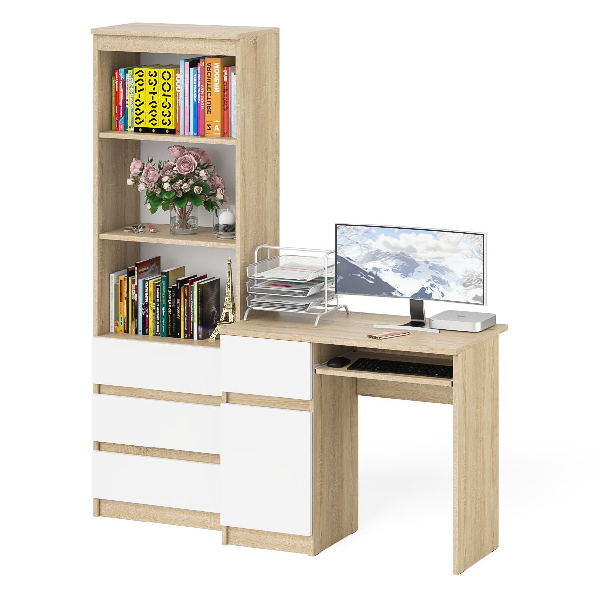 Отзывы о Столплит Стол компьютерный с ящиком и дверкой МС-1 левый со стеллажом МСТ600 Мори Дуб Сонома, Белый