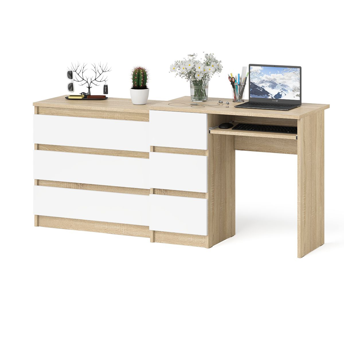 Отзывы о Столплит Стол компьютерный с тумбой МС-6 левый с комодом на три ящика МК800 Мори Дуб Сонома, Белый