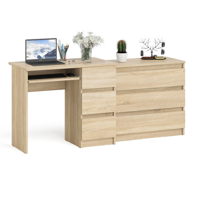 Отзывы о Столплит Компьютерный стол с тремя ящиками МС-6 правый с комодом на три ящика Мори Дуб Сонома