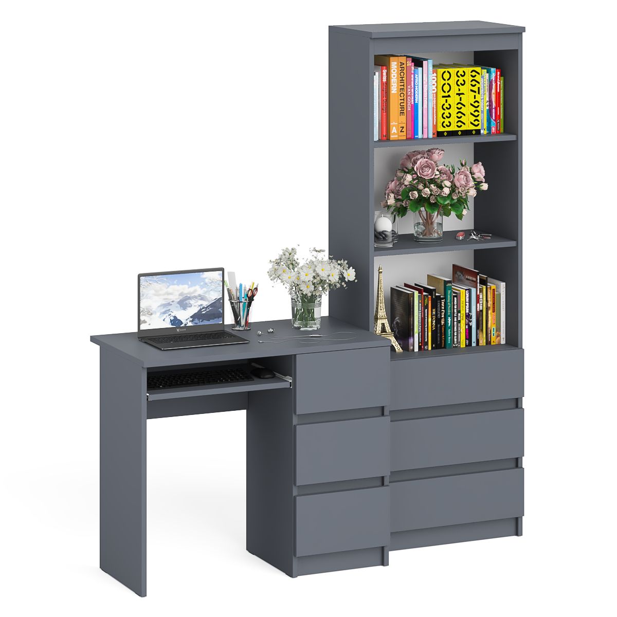 Отзывы о Столплит Стол компьютерный с тумбой справа и стеллаж с ящиками и нишами на 600 Мори Графит