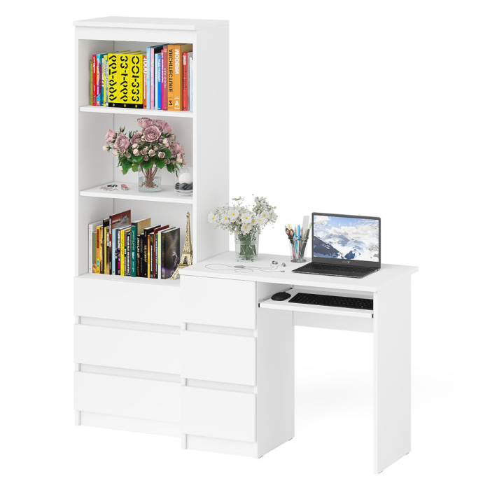 Отзывы о Столплит Стол компьютерный с тумбой с ящиками слева и стеллаж-комод МСТ600.3 Мори Белый