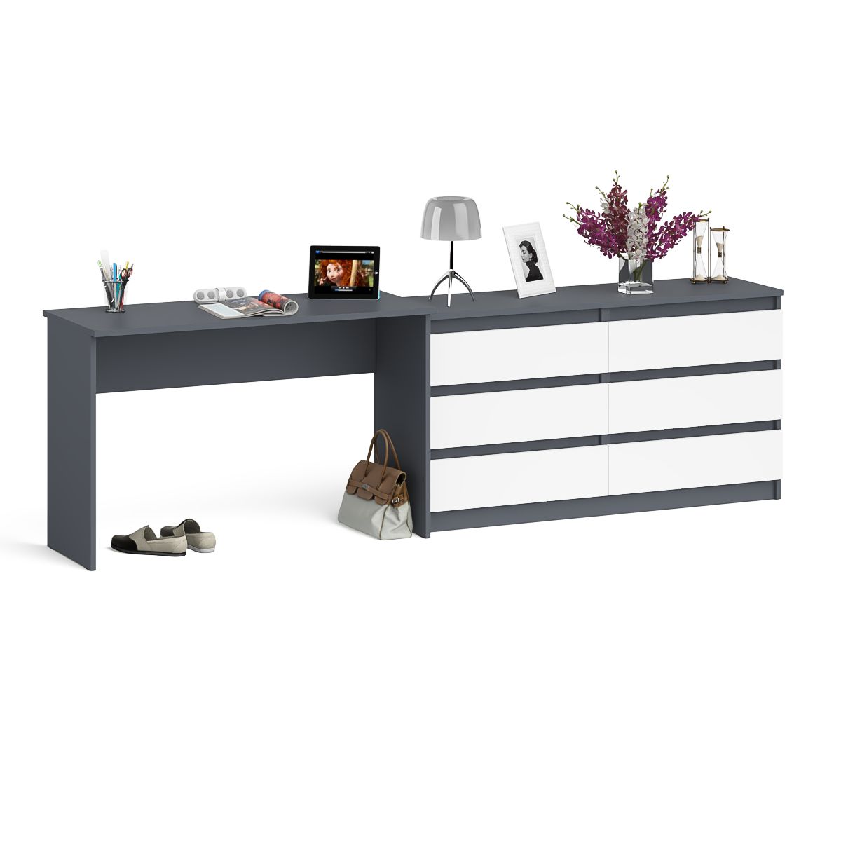 Отзывы о Столплит Письменный стол Мори с широким комодом на 6-ть ящиков Графит/Белый