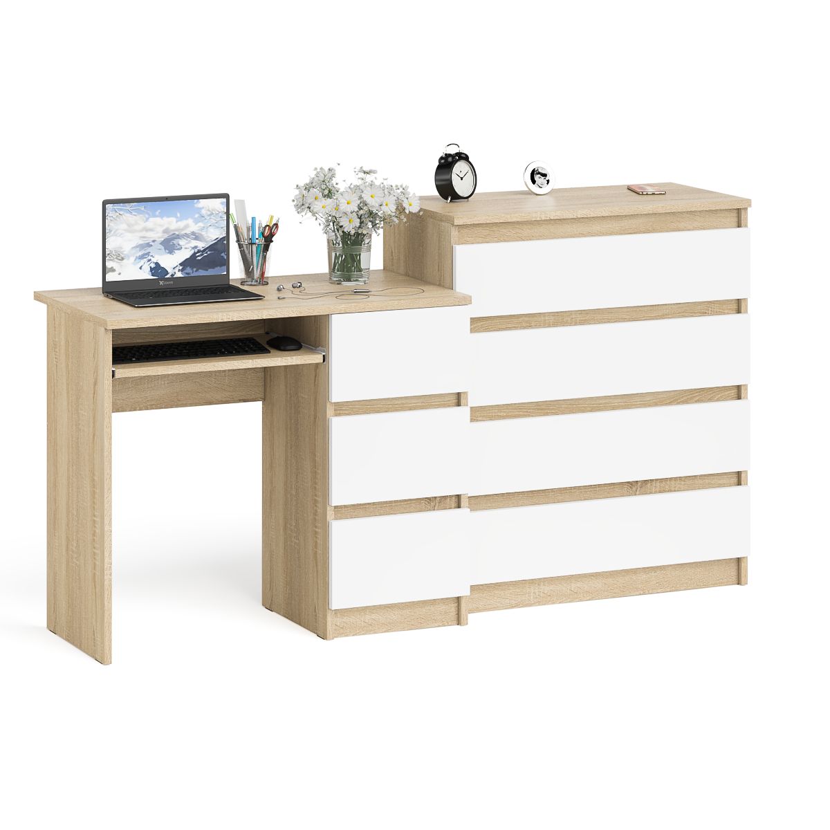 Отзывы о Столплит Стол компьютерный с ящиками МС-6 правый с комодом МК800 4 ящика Мори Дуб Сонома, Белый