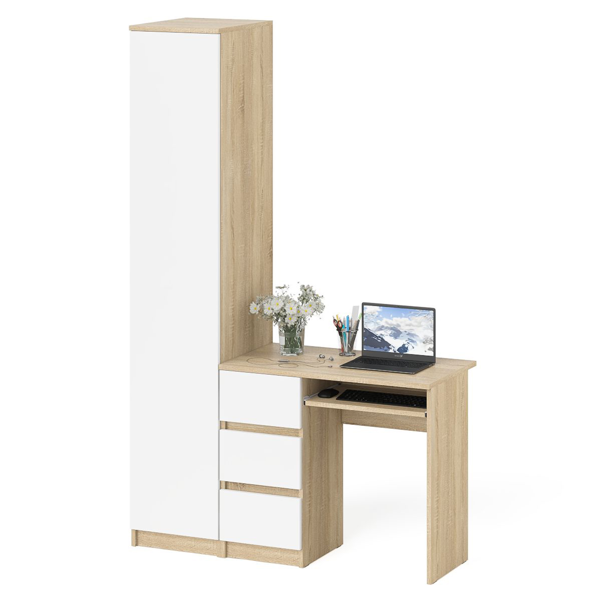 Отзывы о Столплит Компьютерный стол МС-6 левый с узким пеналом 400 Мори Дуб Сонома, Белый