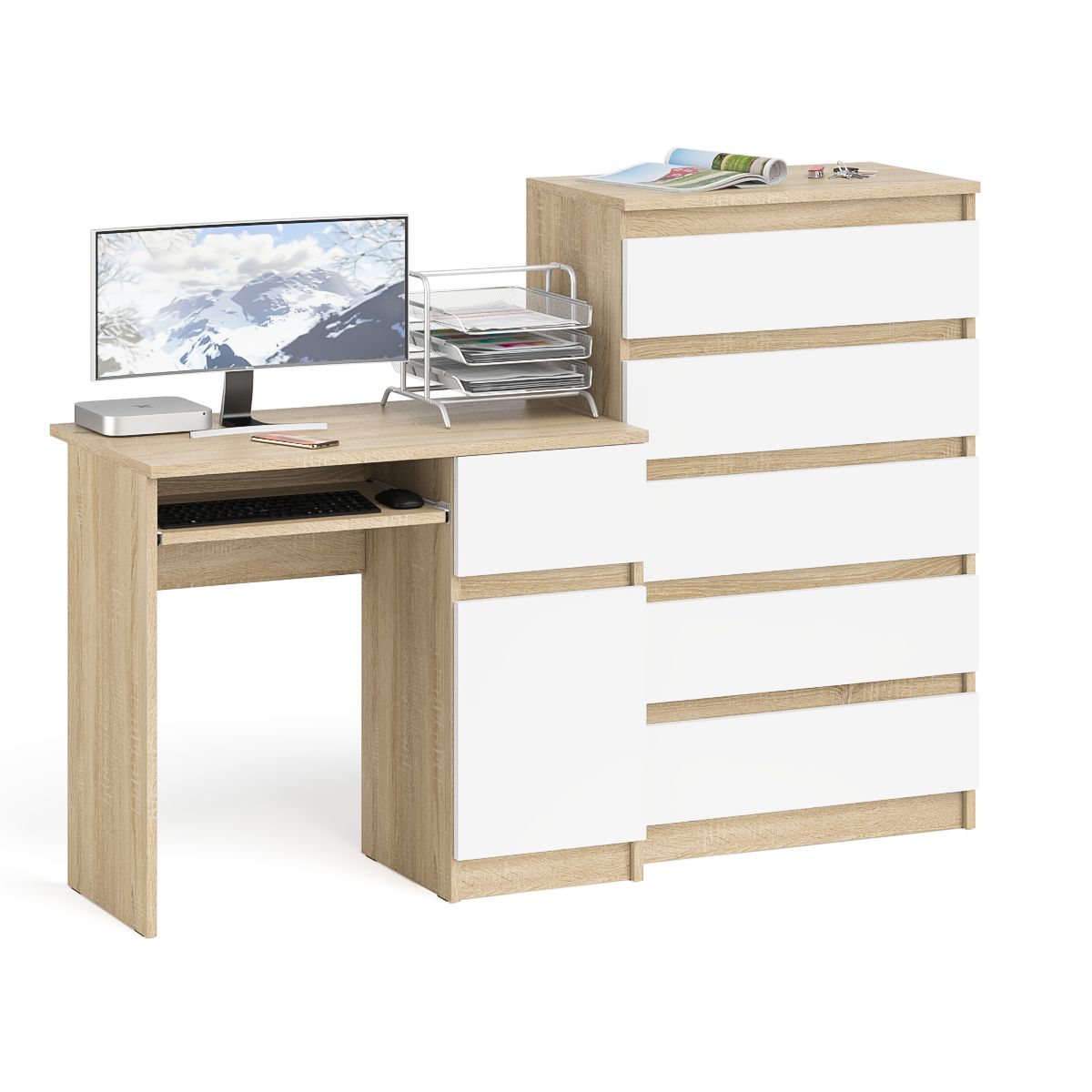 Отзывы о Столплит Компьютерный стол дверка и ящик справа МС-1 и комод высокий на 5-ть ящиков Мори Дуб Сонома, Белый