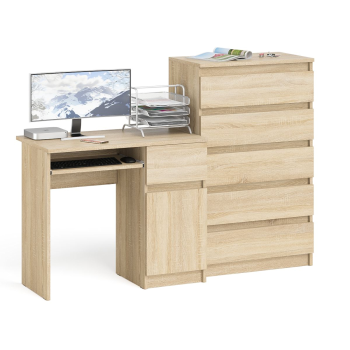 Отзывы о Столплит Компьютерный стол дверка и ящик справа МС-1 и комод высокий на 5-ть ящиков Мори Дуб Сонома