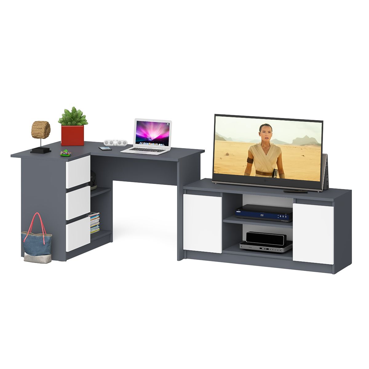 Отзывы о Столплит Стол угловой компьютерный МС-16 левый и широкая тумба на 1200 Мори Графит/Белый