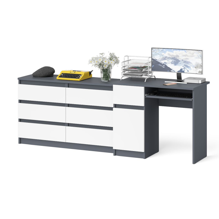 Отзывы о Столплит Стол компьютерный МС-1 с дверкой слева с широким комодом 1200 6-ть ящиков Мори Графит/Белый