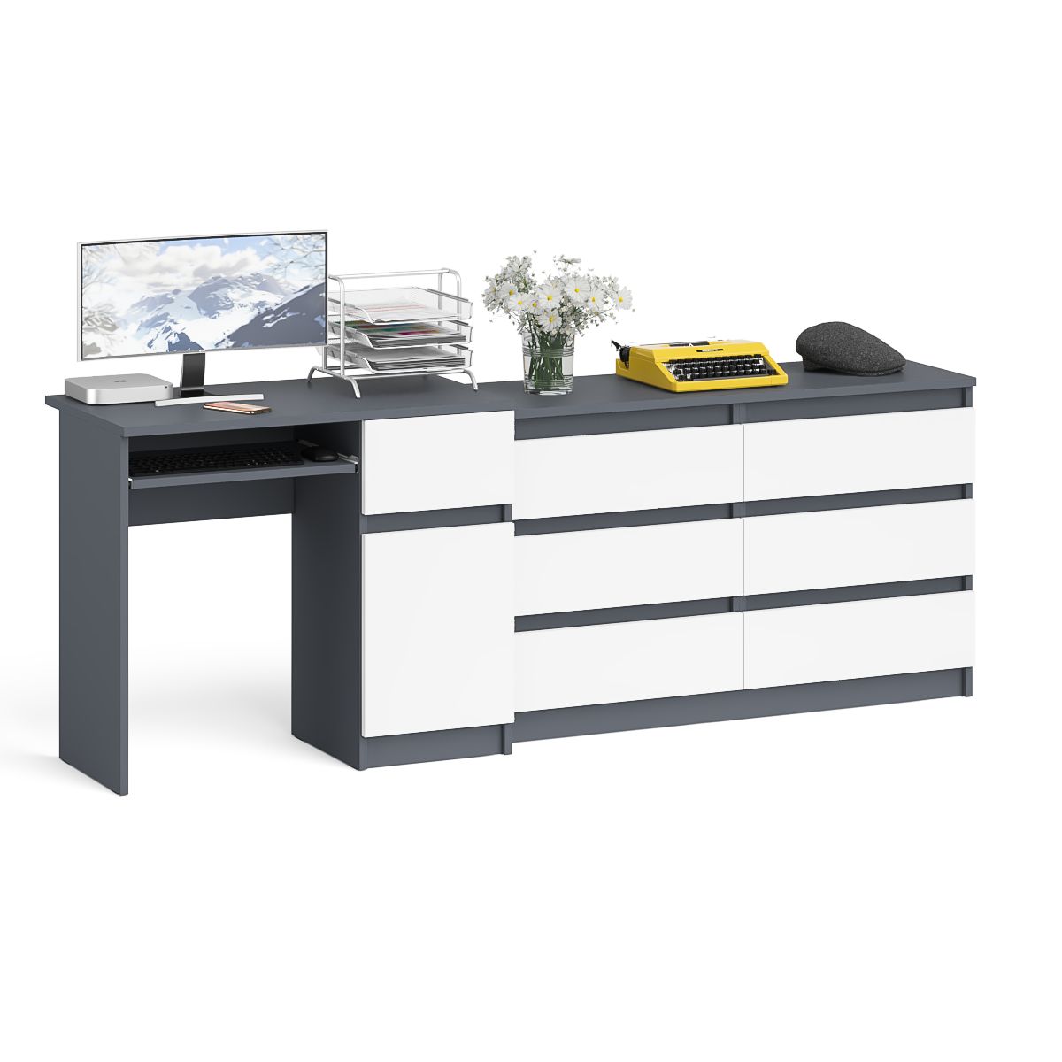 Компьютерный стол МС-1 с дверкой и ящиком справа и комодом на 1200 6 ящиков Мори - минималистичный дизайн и доступная цена позволяет наслаждаться качественной и современной мебелью без значительных финансовых затрат!