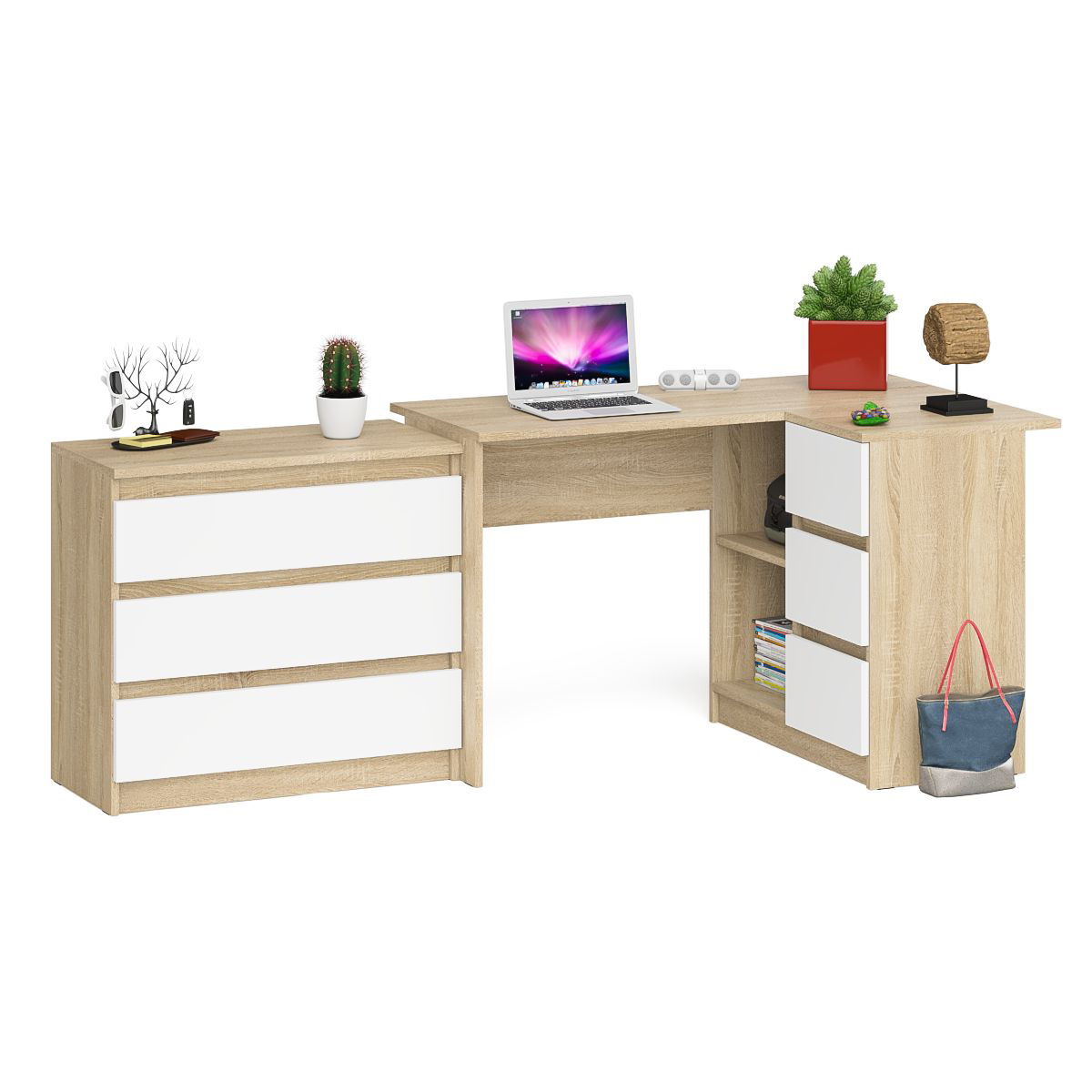 Отзывы о Столплит Комод три ящика на 800 со столом компьютерным угловым МС-16 правым Мори Дуб Сонома, Белый