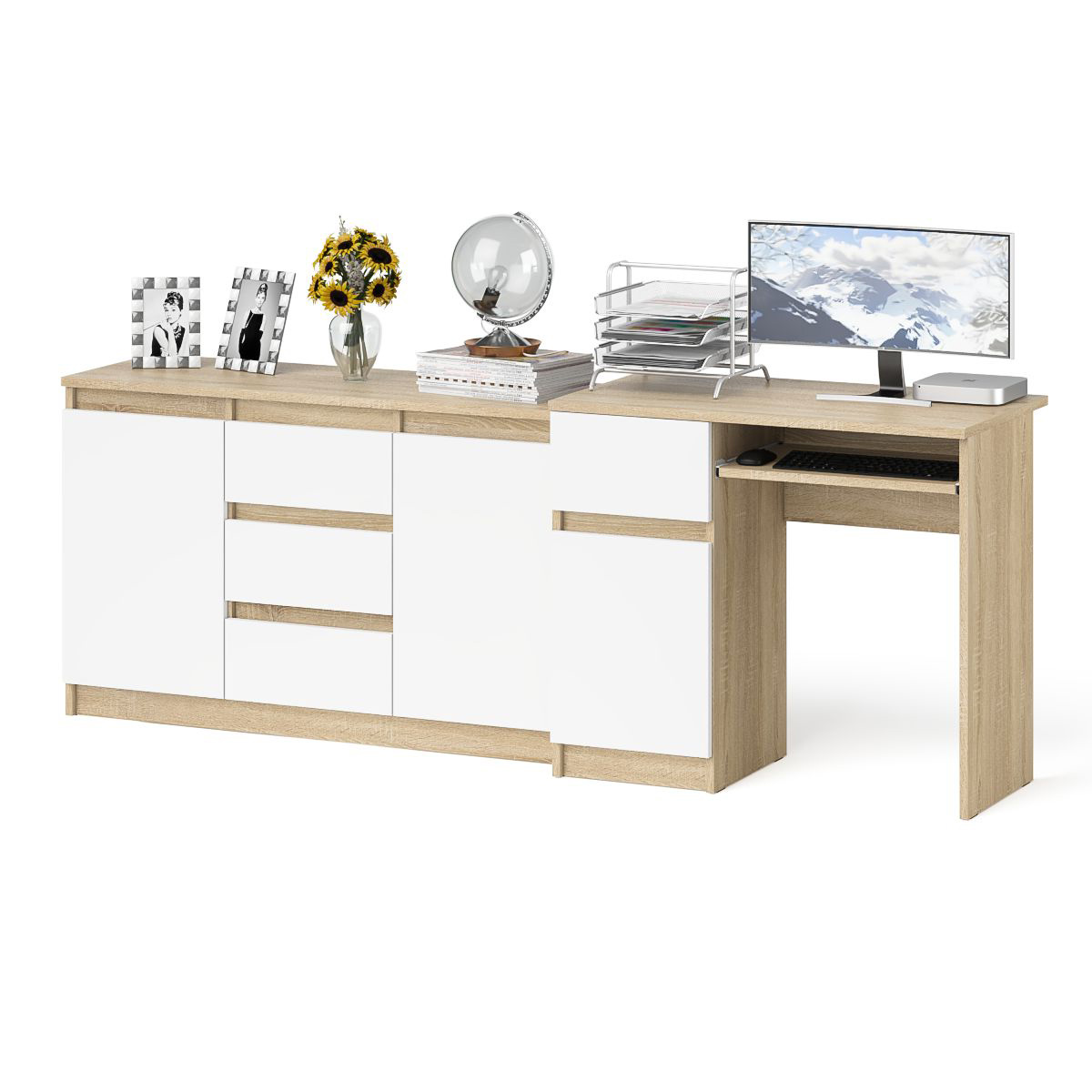 Отзывы о Столплит Комод-тумба Мори МК1200 3 ящика и две дверки со столом компьютерным МС-1 левым Мори Дуб Сонома, Белый