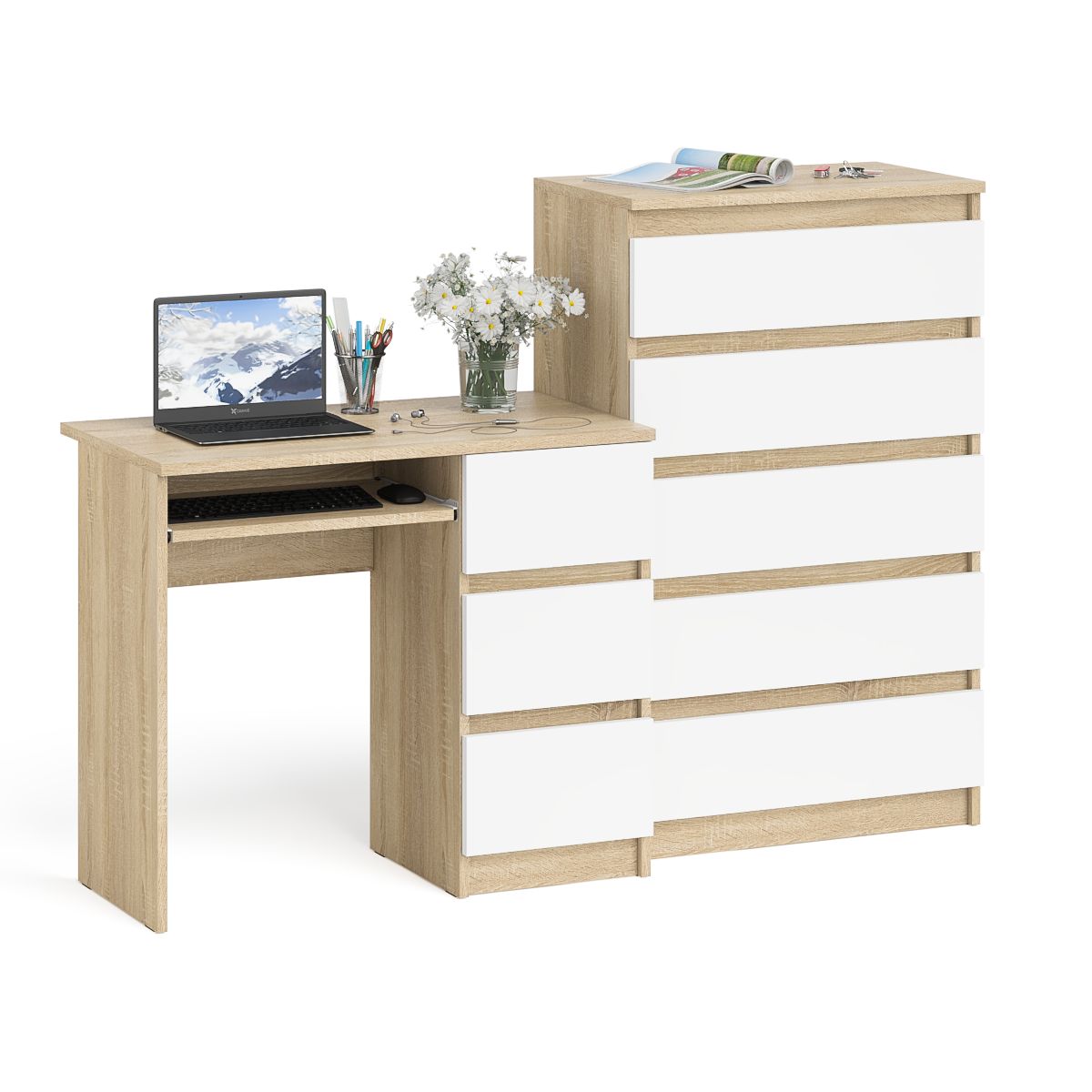 Отзывы о Столплит Высокий комод Мори на 700 5 ящиков и компьютерный стол Мори МС-6 тумба справа Дуб Сонома, Белый