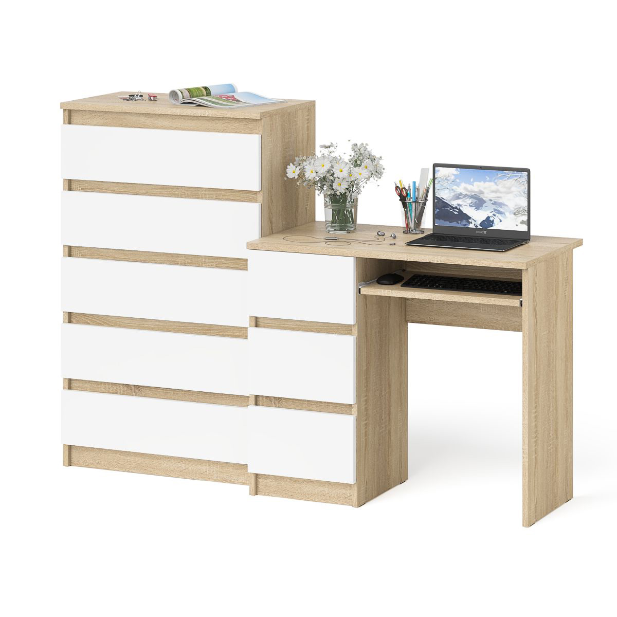 Отзывы о Столплит Комод высокий Мори МК700 5-ть ящиков и стол компьютерный Мори МС-6 левый Дуб Сонома, Белый