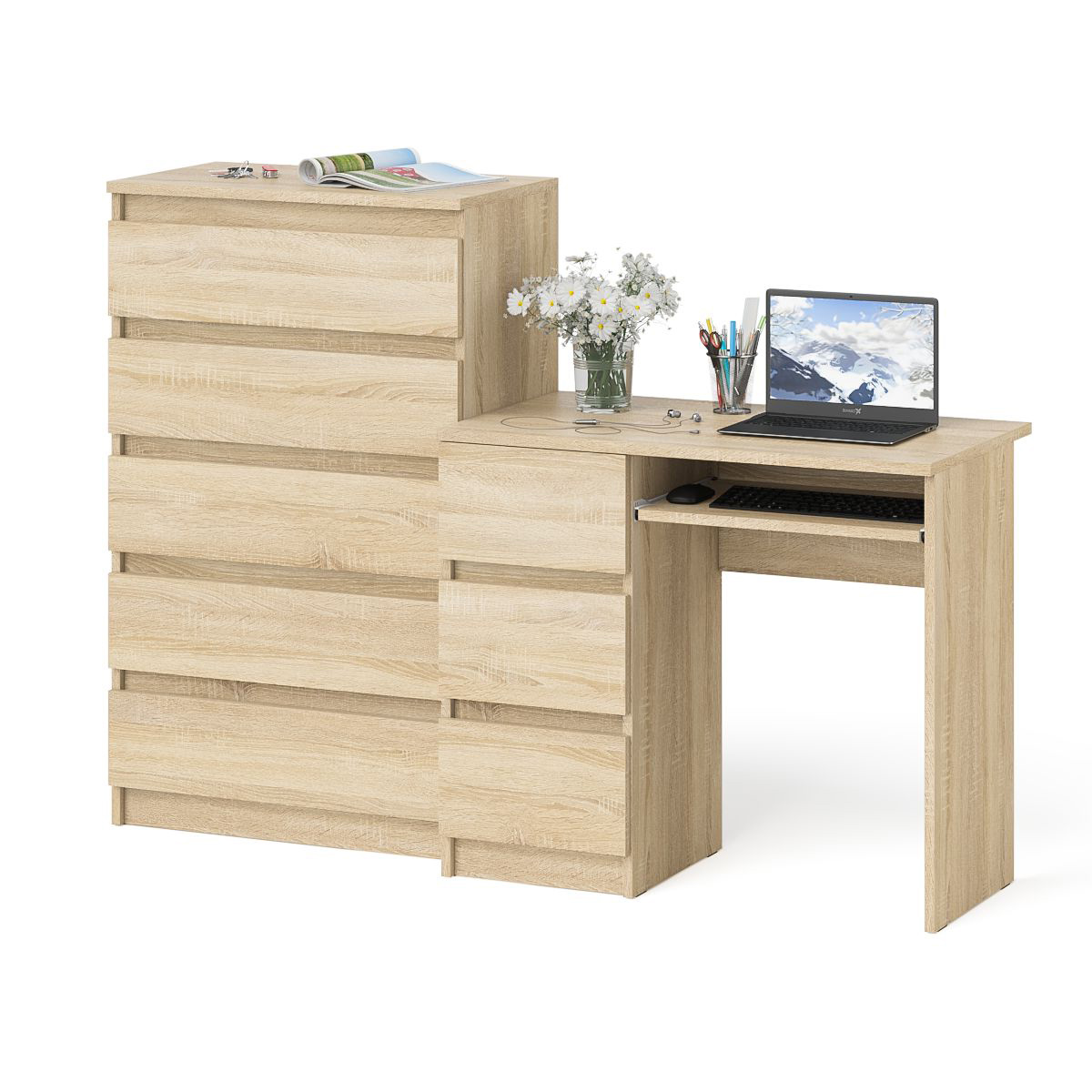 Отзывы о Столплит Комод высокий Мори МК700 5-ть ящиков и стол компьютерный Мори МС-6 левый Дуб Сонома