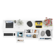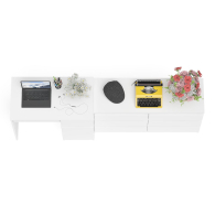 Открывание ящиков производится за счет пространства между планками и фасадами. Выдвижные ящики на роликовых направляющих L=350 мм неполного выдвижения обеспечивают комфортную эксплуатацию. На нижних кромках опор предусмотрены пластиковые подпятники для защиты поверхности пола от механических повреждений. Поставляется в разобранном виде в надёжной упаковке, с комплектом сборочной фурнитуры и инструкцией по сборке.