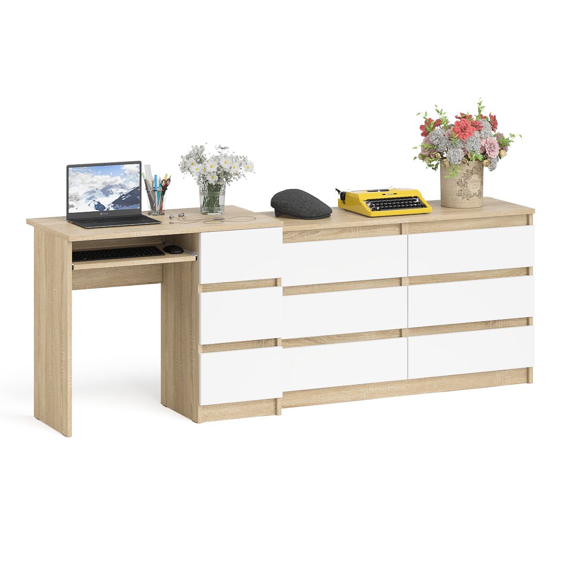Отзывы о Столплит Комод Мори МК-1200 6 ящиков и компьютерный стол МС-6 три ящика справа Дуб Сонома, Белый